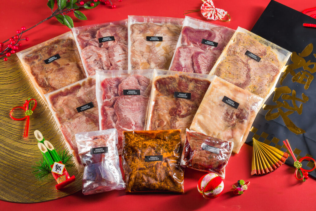 総量2kg超え。通販で人気の「プレミアムタンフェアセット」に牛タンメニュー4点を追加した、初めての方にもおすすめの内容です。